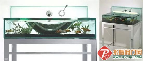 如果想让自家浴室出落得与众不同、又酷又漂亮,你一定会想要个像这样的水族馆洗手槽。聪明的设计师将洗手槽直接设计成了玻璃水族箱的造型,并为之配备了供氧、水过滤和循环系统。所以,使用者可以在中间的夹层安心的放养几条小金鱼。这样下来,养金鱼就不用占用额外的空间,而每每洗手时,你就能顺便观赏到令人赏心悦目的鱼儿鱼儿水中游~