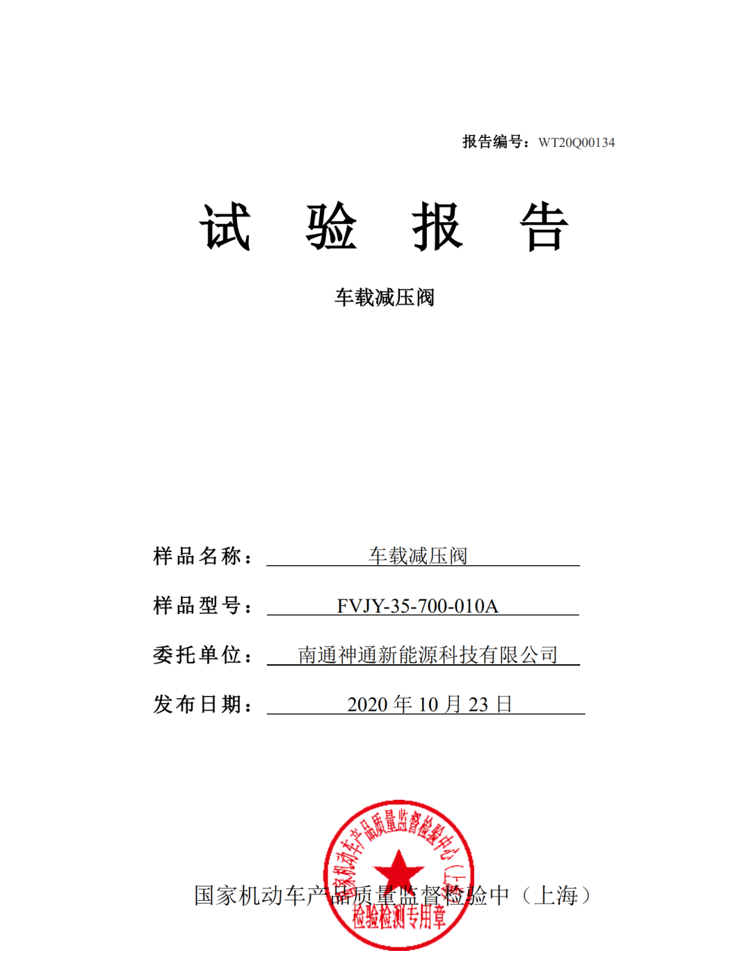 近日,南通神通新能源科技有限公司研发的70/35MPa车载组合式减压阀(以下简称减压阀),已在国家机动车产品质量监督检验中心(上海)完成第三方检测,并取得测试报告!该型减压阀也是国内首例通过第三方检测的70MPa组合减压阀。