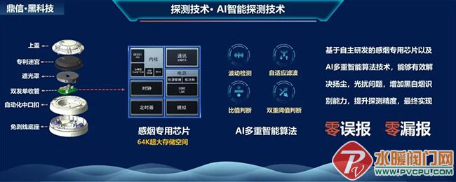 鼎信探测技术的基础在于芯片和算法,鼎信针对消防产品设计研发了专用的MCU和通讯芯片, 64K超大存储空间的MCU芯片,运用高速ADC,实现AI多重智能算法,自适应现场使用环境,能够有效解决扬尘、光扰问题,增强黑白烟识别能力。探测器的硬件部分则采用了折式迷宫专利设计和双向发射接收管设计。通过软件的比值判断、波动检测等算法和硬件的最新设计方案,最终解决行业痛点,实现零误报、零漏报。